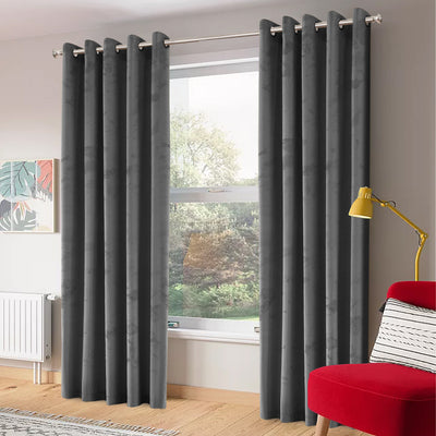 Works well in bedrooms for restful sleep, or in living rooms where a bold colour is wanted. For other colours, see our beige velvet curtains or charcoal velvet curtains.