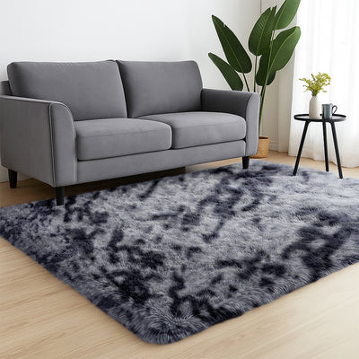 Large Grey Shaggy Rug Faux Fur Soft Fluffy