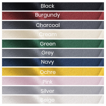 | COLOUR | Black, Beige, Navy, Burgundy, Charcoal, Green, Grey, Ochre, Pink, Silver, White |