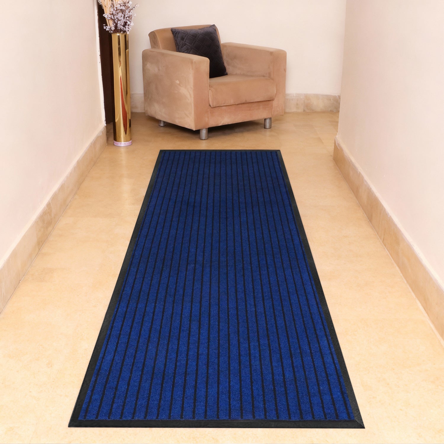 The generously sized rubber-backed carpet entrance mat prevents dirt and debris from spreading, offering reliable protection for your home or office. Worried about slips and falls? Our non-slip blue door runners provide dependable traction, ensuring safety in any environment. The extra-long non-slip door mats are perfect for hallways or corridors, seamlessly blending style with functionality.