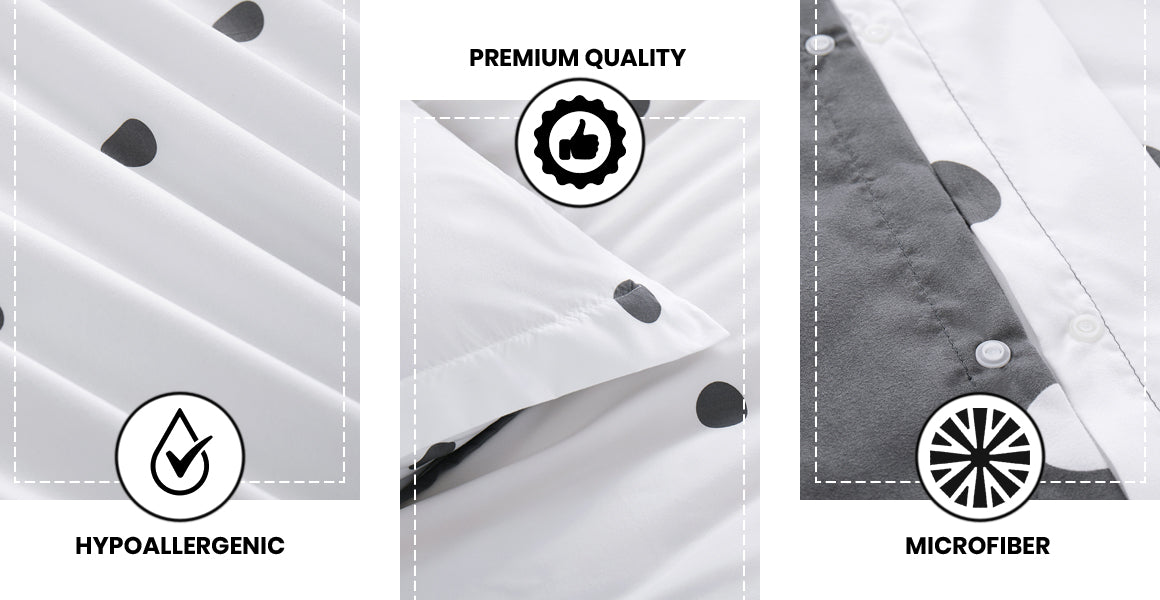 This marvellous white and grey doted reversible duvet cover set is a perfect addition to give an upgrade to your bedding's luxurious feel. Crafted with 100% pure microfiber to make your bedtime serene and restful along with providing an uplifted style in a bright colour to your bedding.
