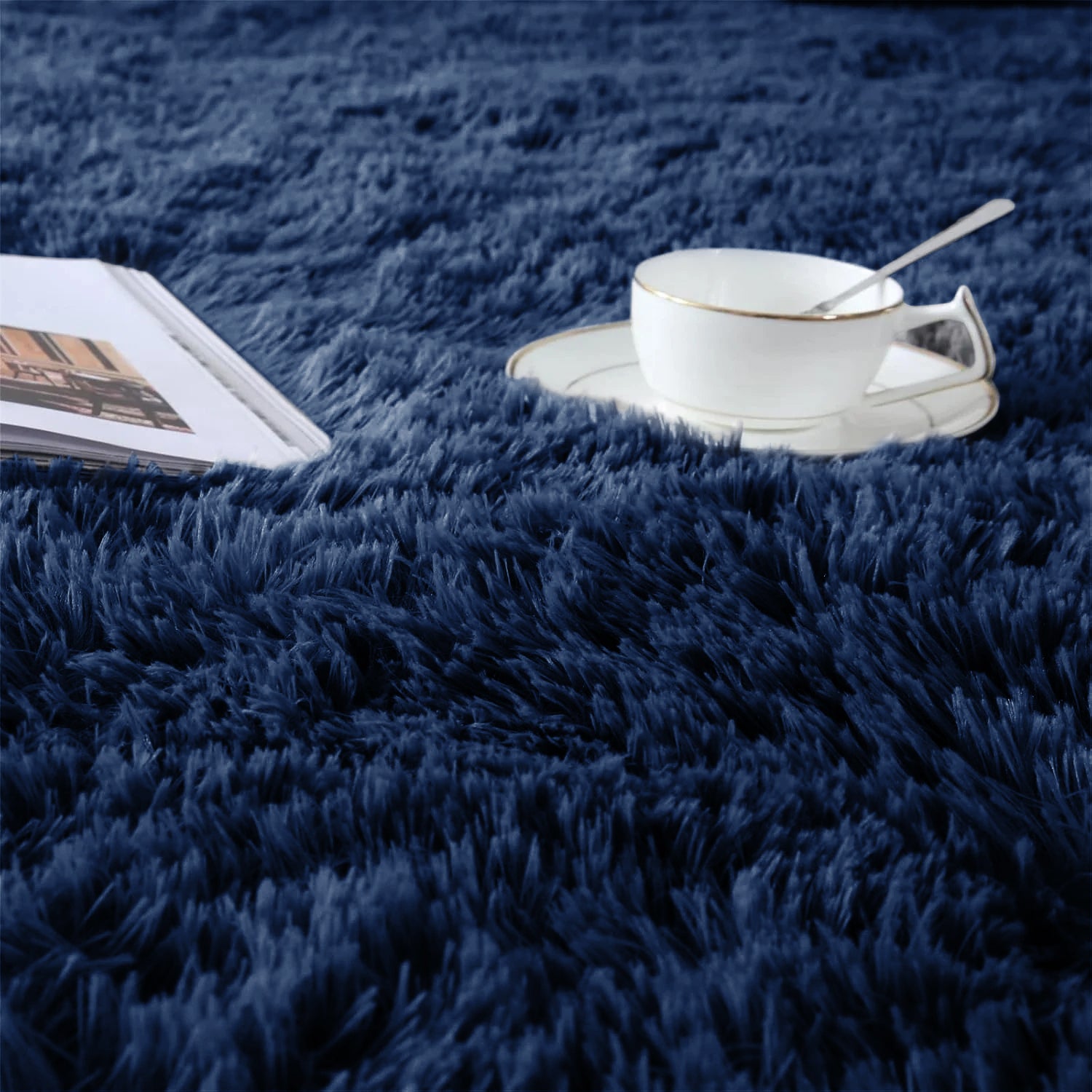 Navy Shaggy Rug Faux Fur Anti Slip Soft Fluffy